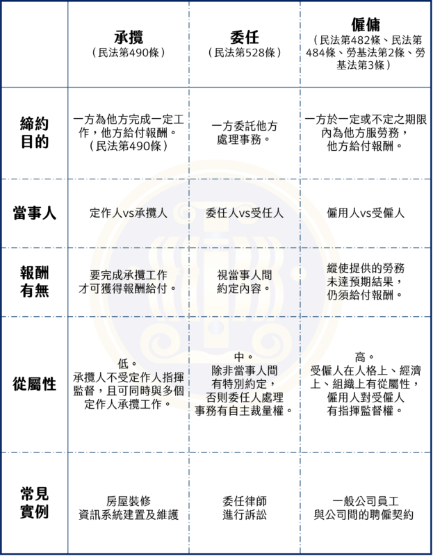 文章來源:僱傭、承攬、委任?我請的員工到底要不要遵守勞基法的工資、工時及加班費等規範呢?